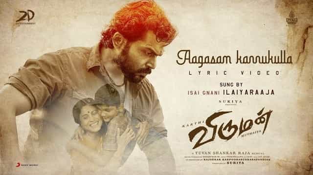 Aagaasam Kannukkulla Lyrics from Viruman is latest Tamil song sung by Ilaiyaraaja with music also given by Yuvan Shankar Raja. Aagaasam Kannukkulla song lyrics are written by Raju Murugan.