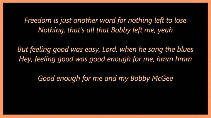 Me and Bobby McGee is a classic country song written by Kris Kristofferson and Fred Foster. The song was originally performed by Roger Miller, and later by Janis Joplin. It has since been covered by many other artists. The song tells the story of two friends, Bobby and the narrator, who travel through the country together. It speaks of freedom and the beauty of life on the road.