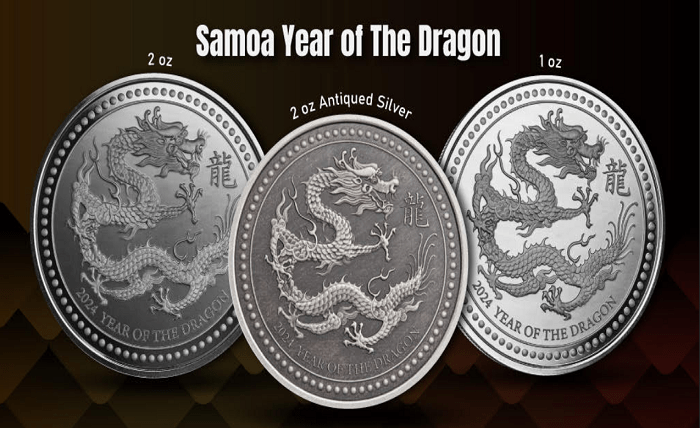 4)  2024 Silver 2 oz Samoa Year of the Dragon Antiqued Coin
